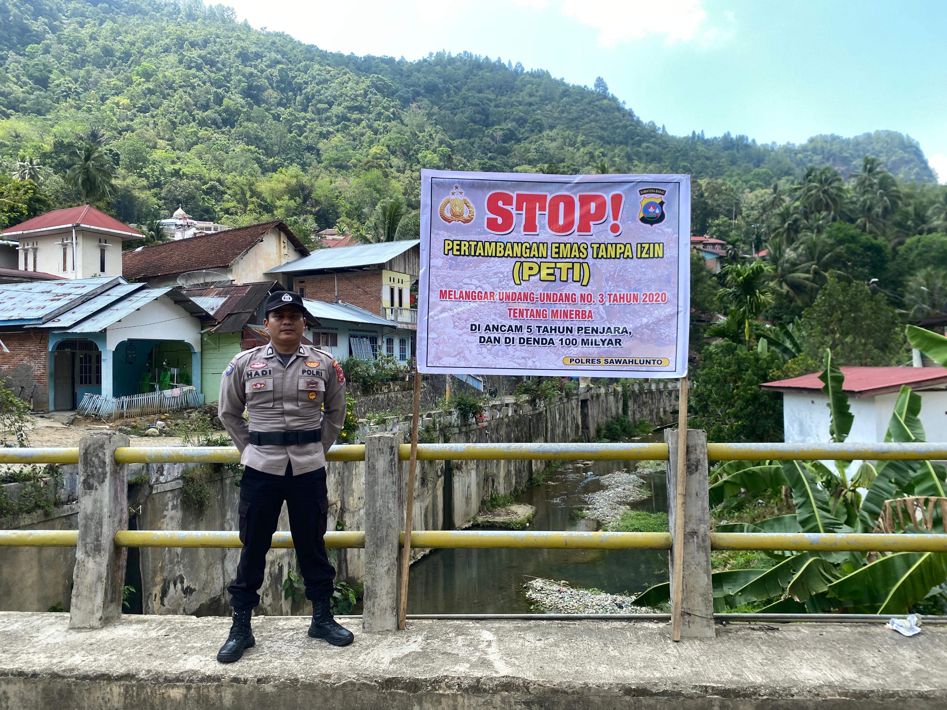 Dalam rangka mencegah maraknya aksi Penambangan Emas Tanpa Izin (PETI) di wilayah hukumnya, Kapolres Sawahlunto telah memerintahkan untuk mengambil langkah proaktif dengan melakukan sosialisasi langsung kepada masyarakat serta memasang spanduk imbauan di sejumlah titik rawan aktivitas tambang ilegal.